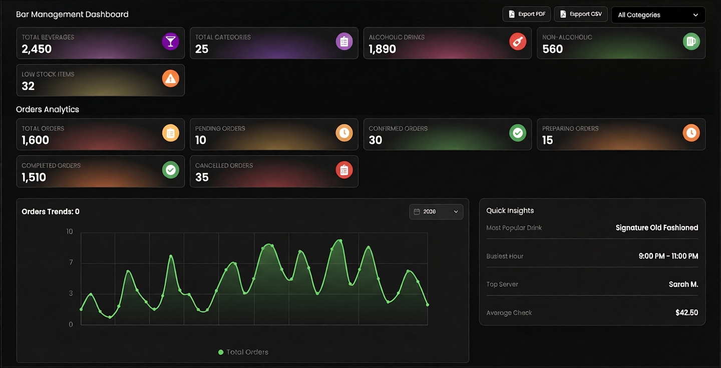 A specialised platform for efficient bar operations, ensuring inventory control and optimised sales tracking.
